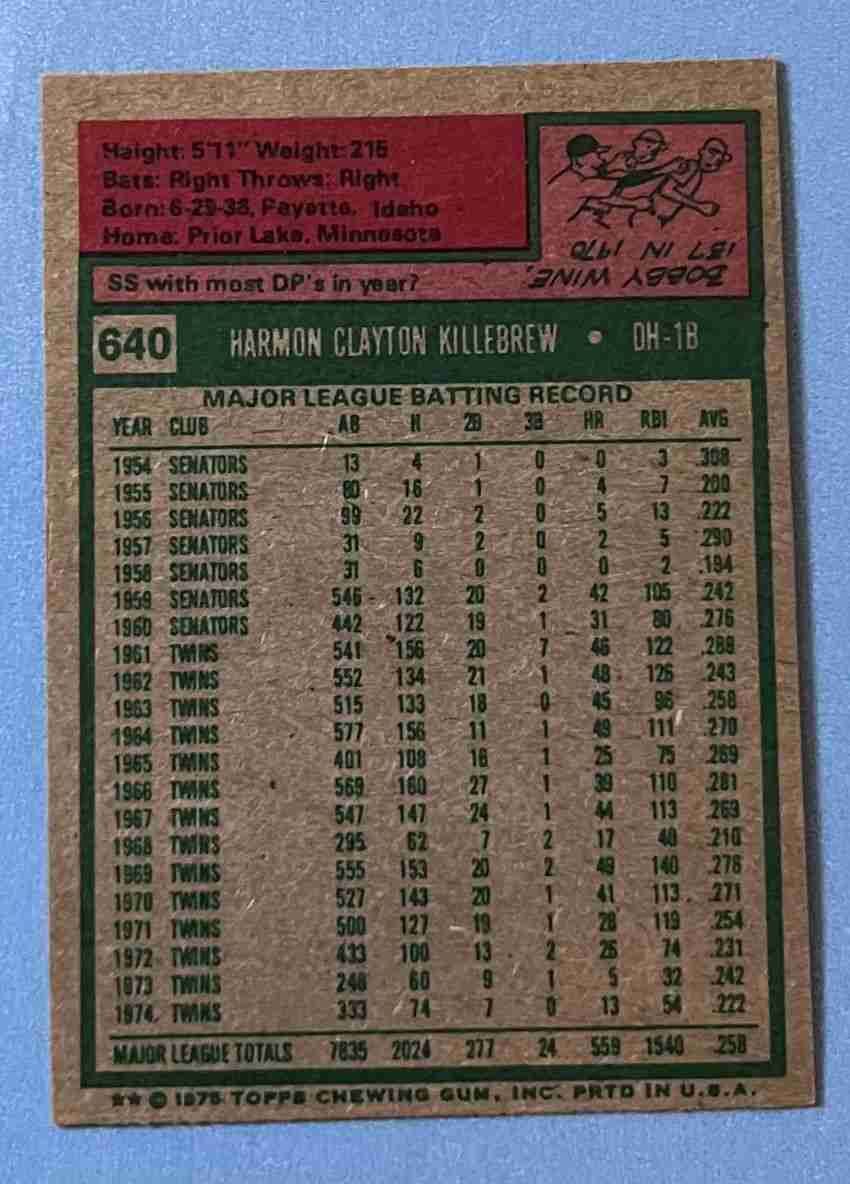 75 ToppsMini HARMON KILLEBREW #640 HOF!