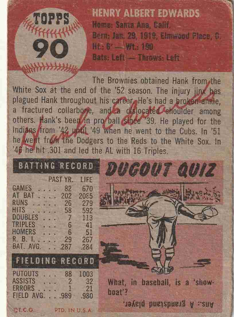 1953 Topps #90 Hank Edwards St. Louis Browns