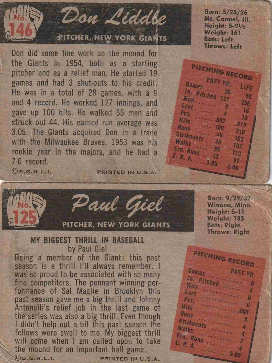 2-1955 Bowman New York Giants #'s 125 146 (lower grade)