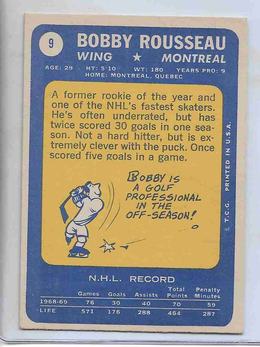 1969-70 Topps #9 ~ Bobby Rousseau Montreal Canadiens