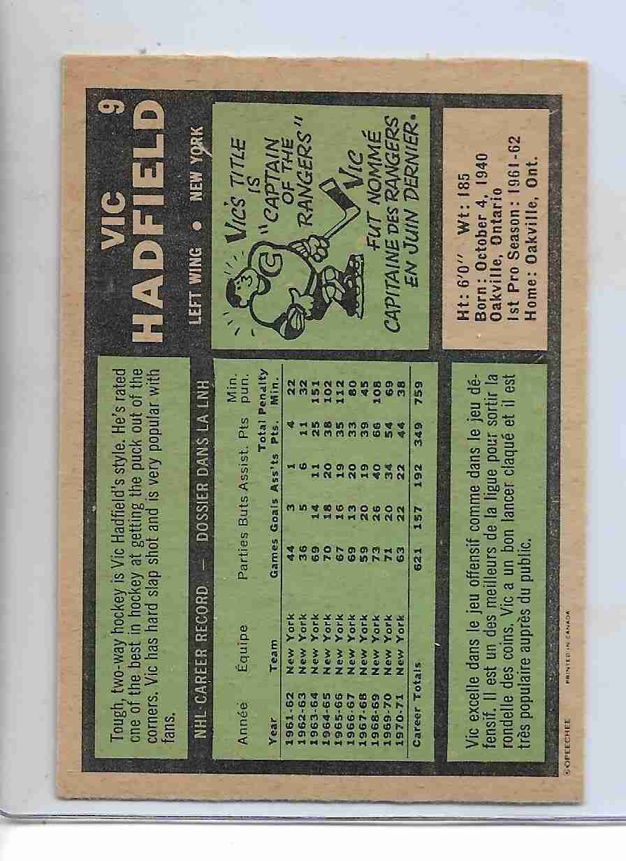 1971-72 OPC #9 ~ Vic Hadfield New York Rangers