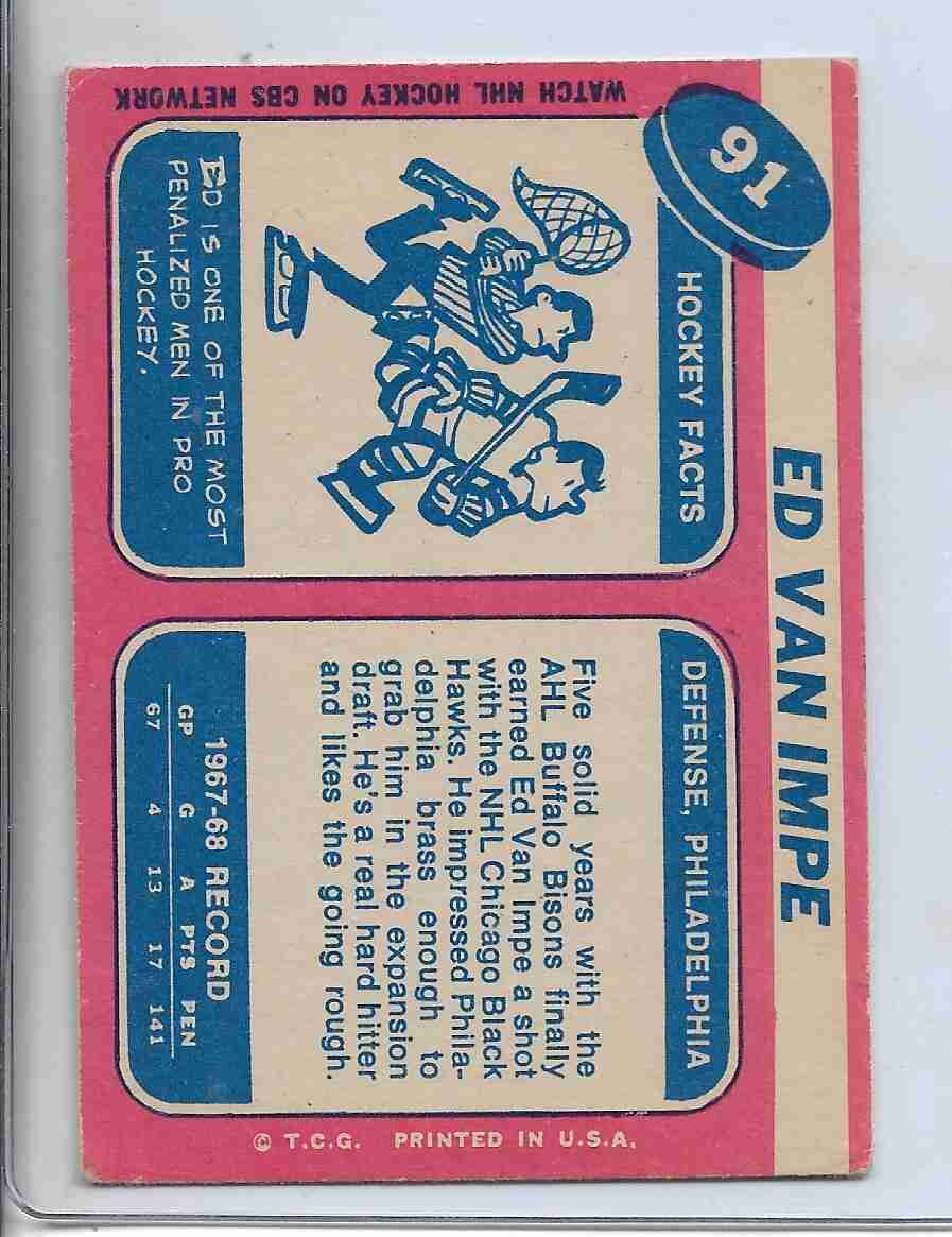 1968-69 Topps #91 ~ Ed Van Impe Philadelphia Flyers