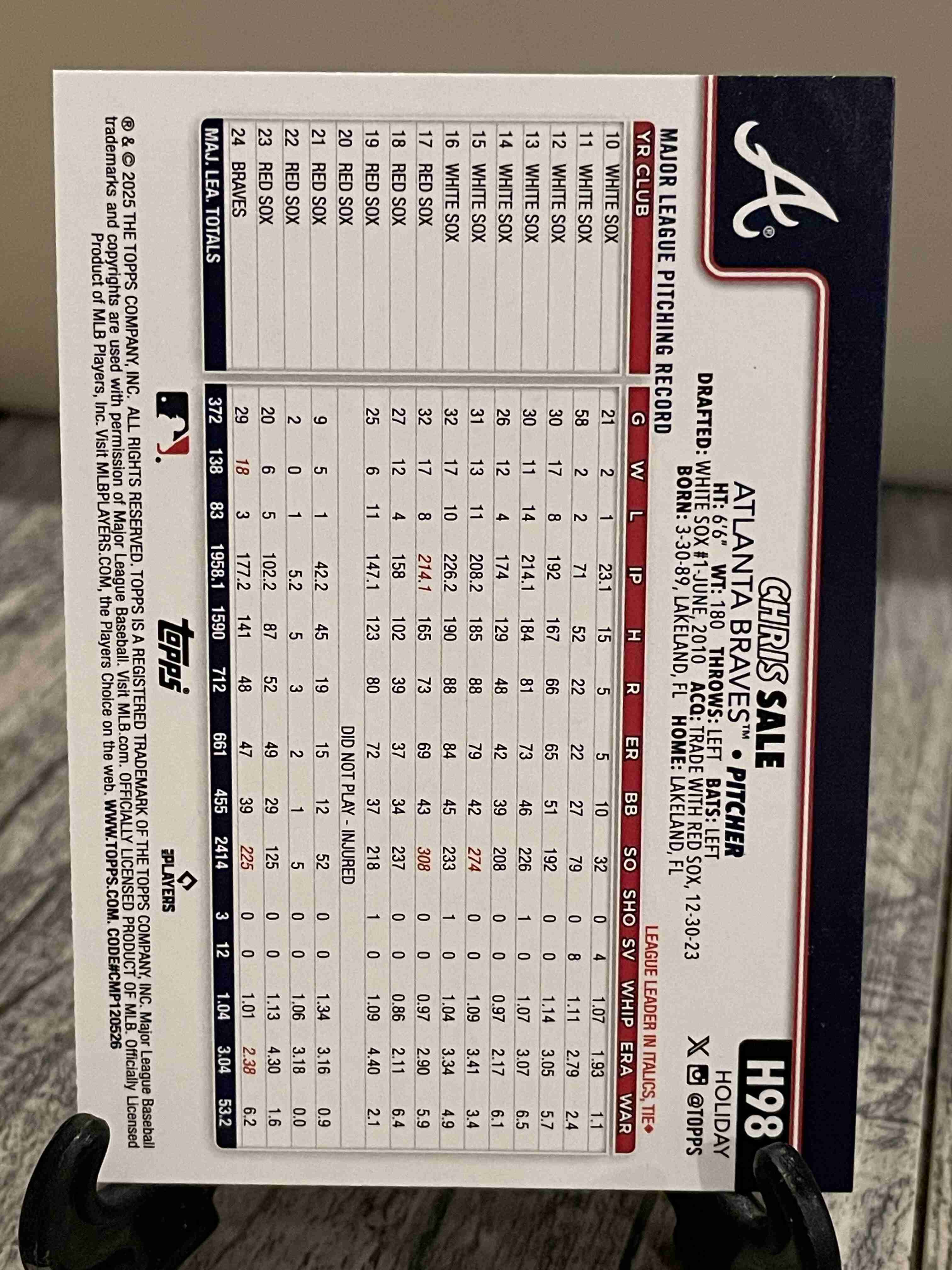 Chris Sale Blue Metallic 2025 Topps Holiday