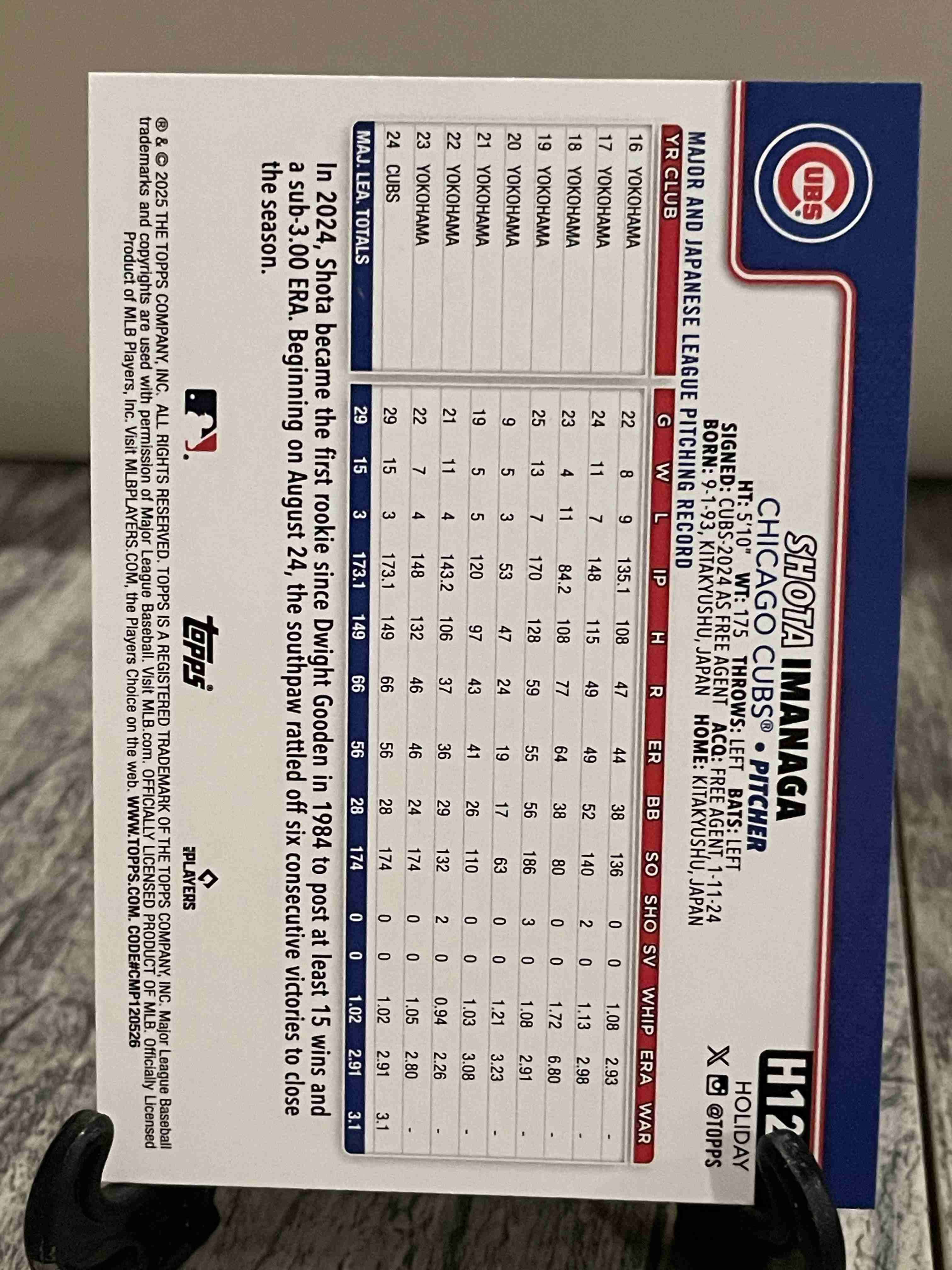 Shota Imanaga Blue Metallic 2025 Topps Holiday Rookie Cup