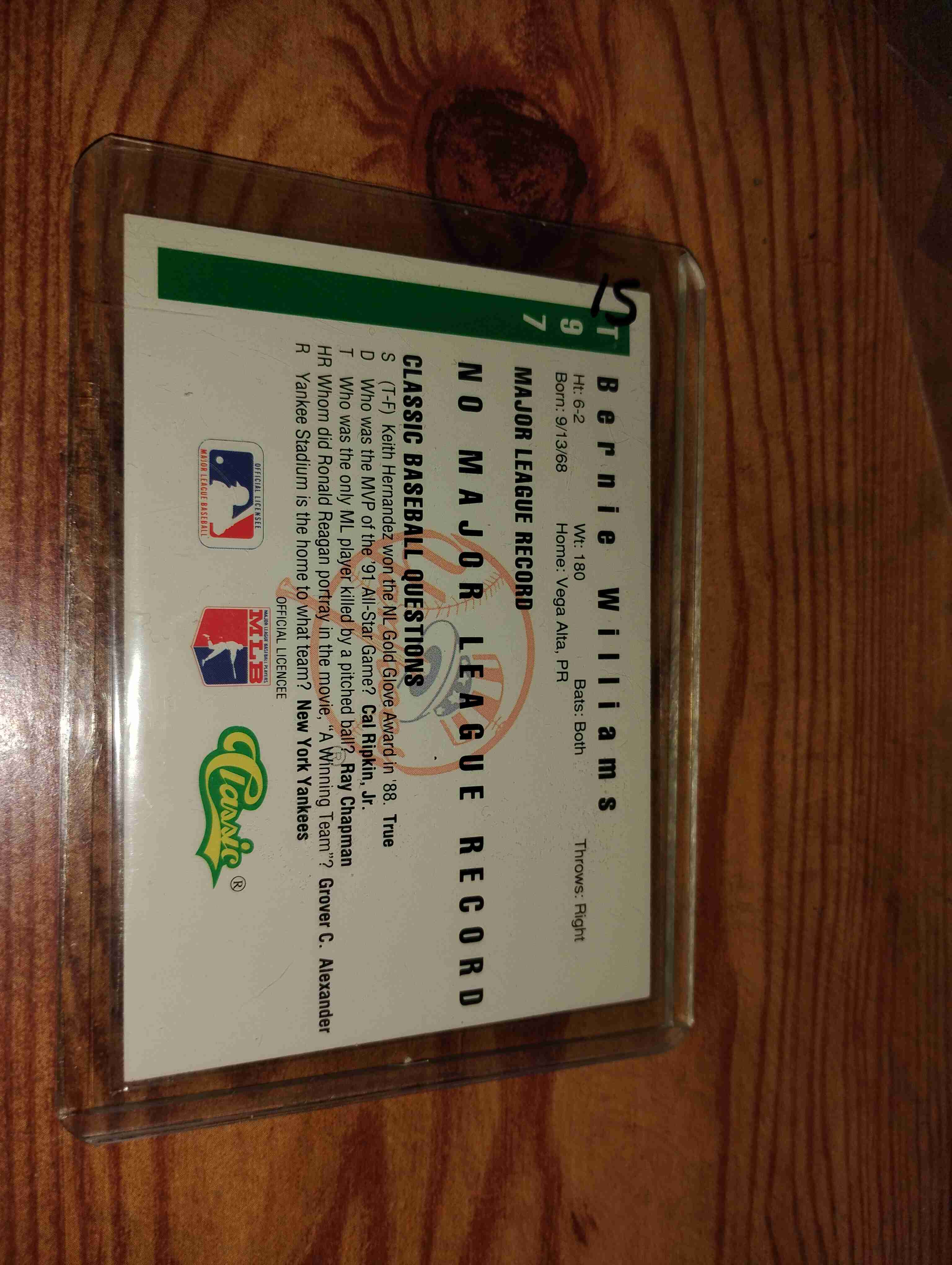 BERNIE WILLIAMS 91 CLASSIC ROOKIE CARD #T97
