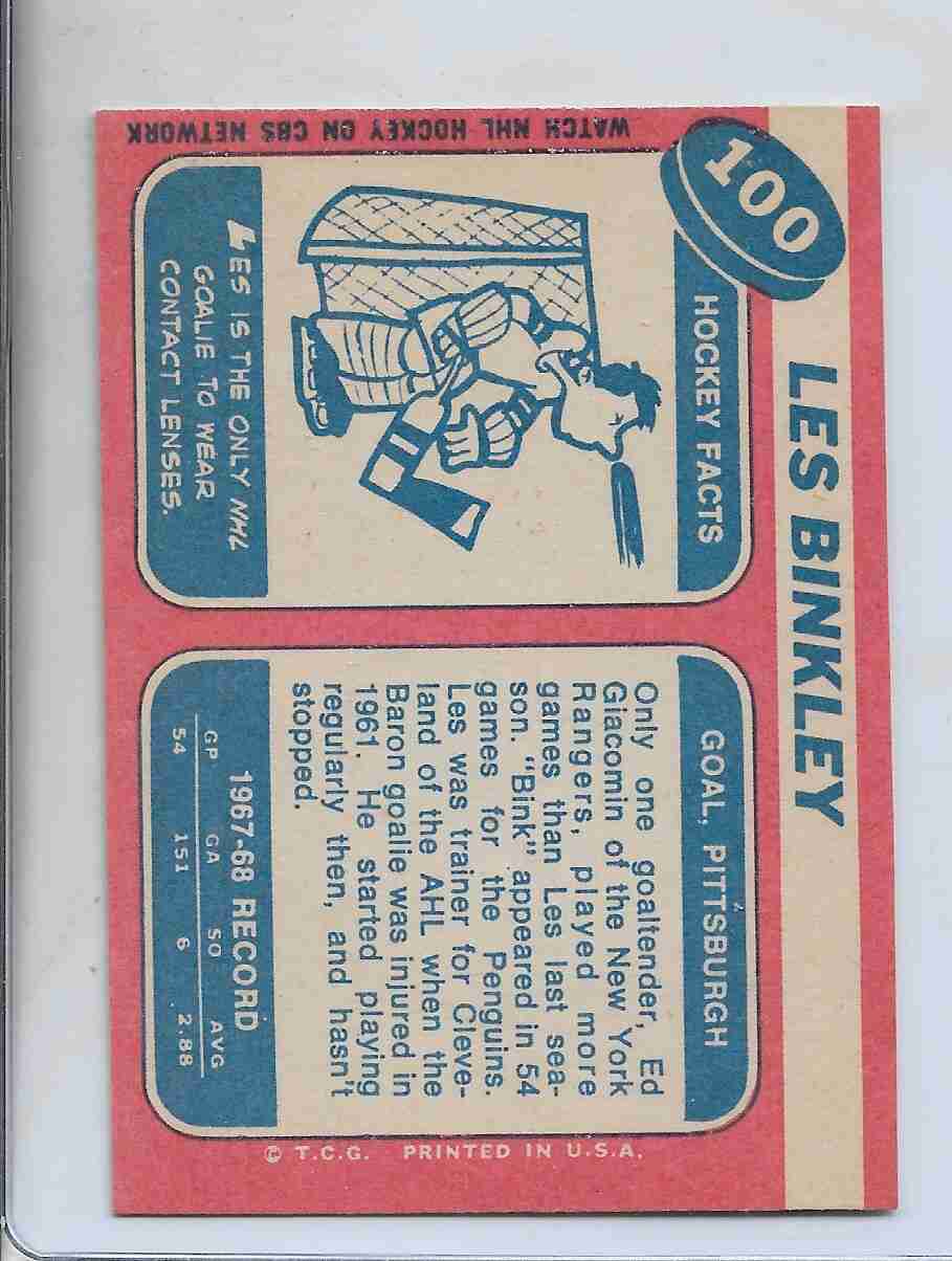 1968-69 Topps #100 ~ Les Binkley Pittsburgh Penguins