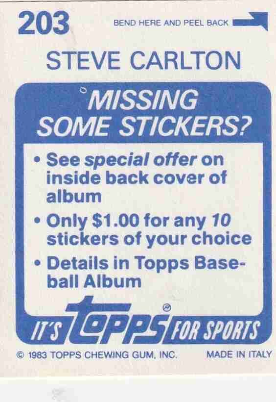 3-1983 Topps Stickers #'s 203 204 267 Steve Carlton Phillie