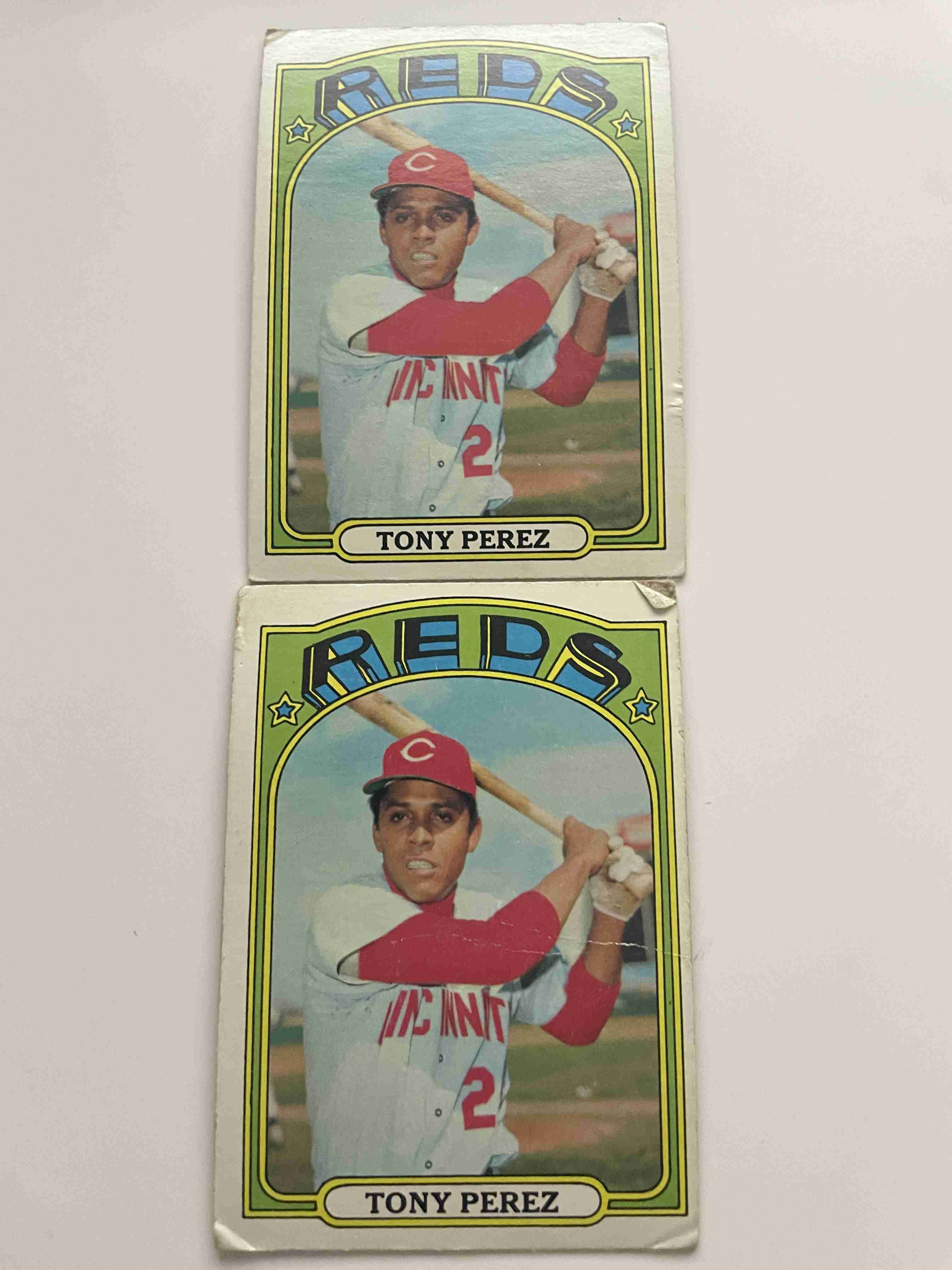 1972 Topps #80 Tony Perez (x2) REds. Both cards have edge wear