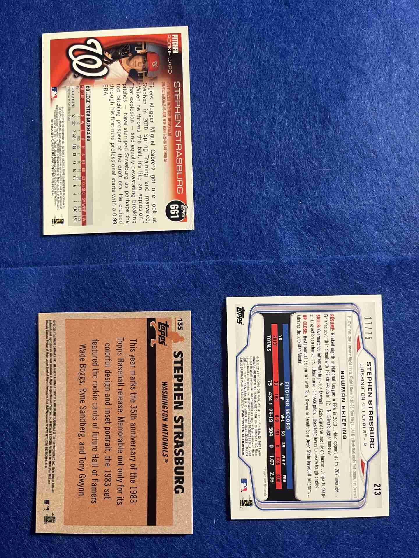 (3) Stephen Strasburg cards, including RC and #'d/75