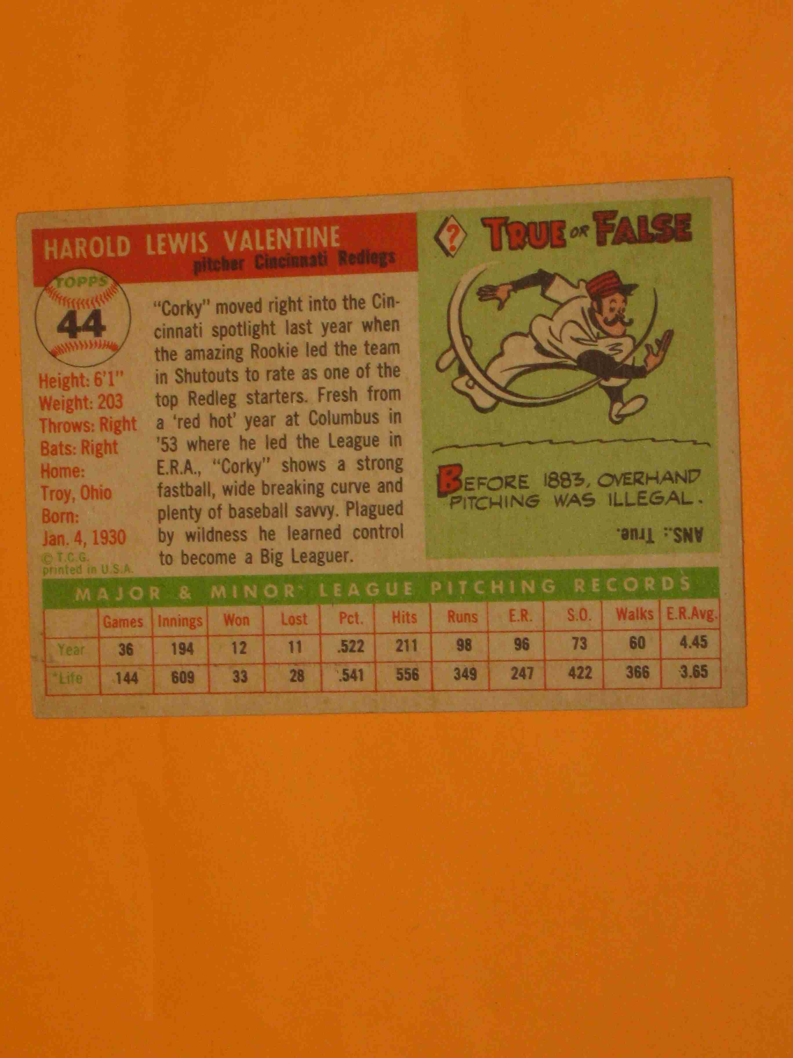 1955 Topps Corky Valentine #44 Cincinnati Reds NICE