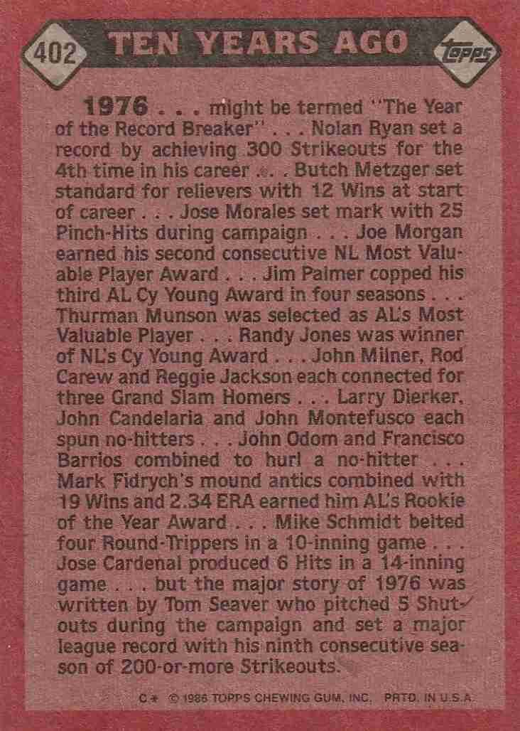 1986 Topps Turn Back the Clock Tom Seaver #402