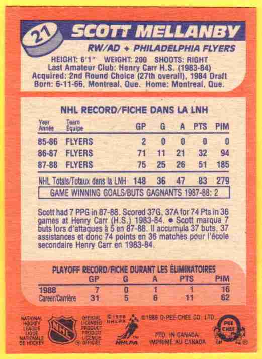 Scott Mellanby #21 [Rookie] 1988 O-Pee-Chee
