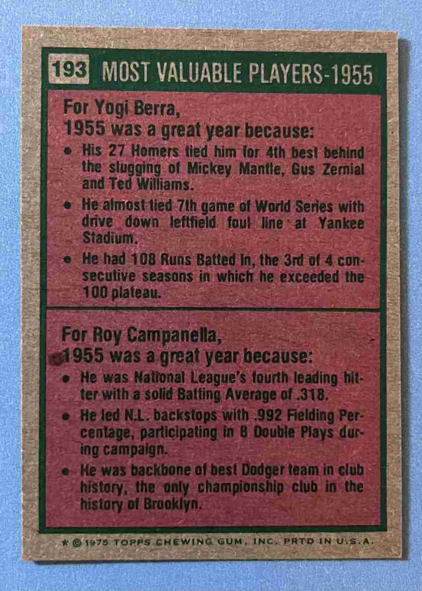 75 ToppsMini 1955 MVPS #193 HOFx2!