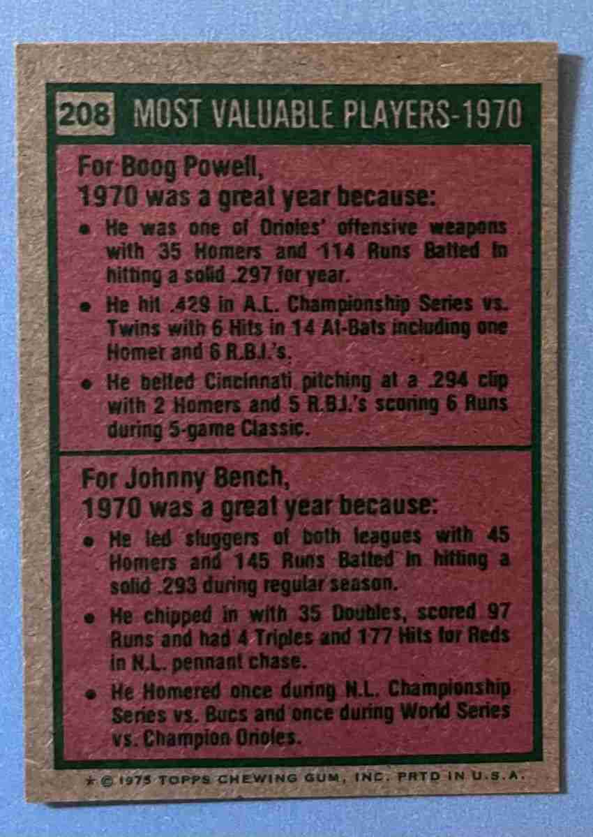 75 ToppsMini 1970 MVPS #208 HOFx1!