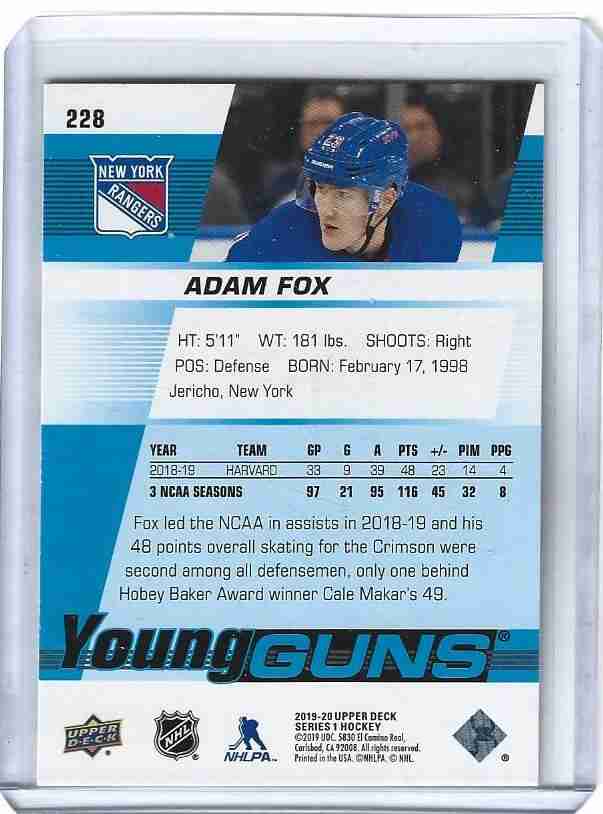 2019/20 UD 1 #228 ADAM FOX YOUNG GUNS