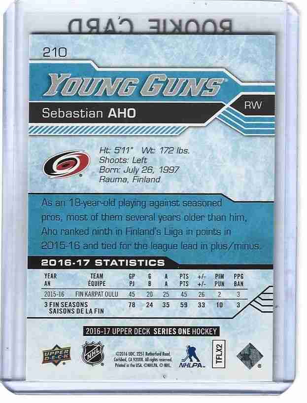 2016/17 UD 1 #210 SEBASTIAN AHO YOUNG GUNS