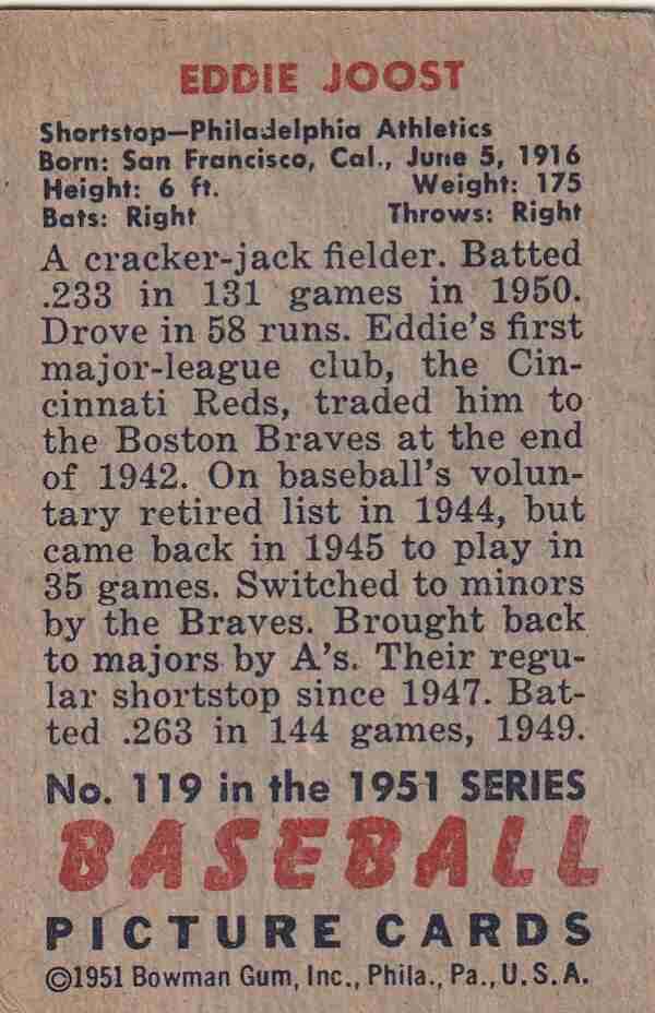 #114 Sam Zoldak (EX/EX+) upper left corner crease #119 Eddie Joost (EX/EX+) mild tip wear