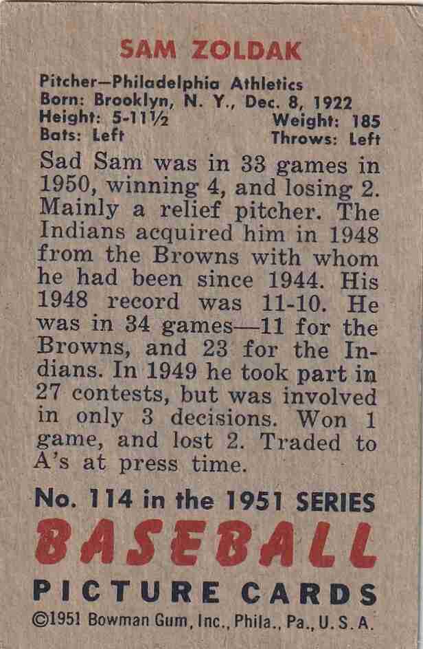 2-1951 Bowman Philadelphia Athletics #'s 114 119