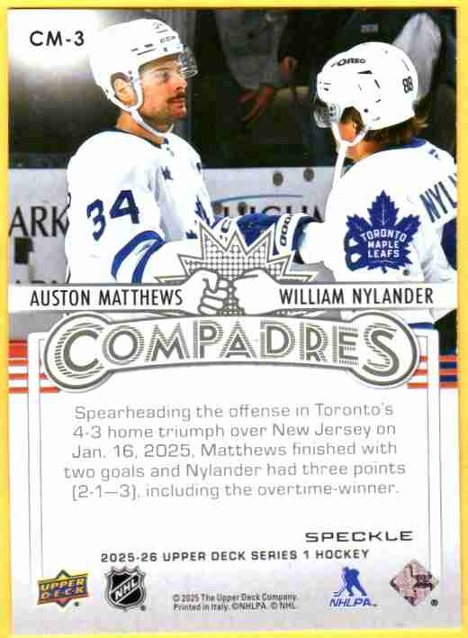 William Nylander/Auston Matthews [Speckle] #CM-3 2025 Upper Deck Compadres