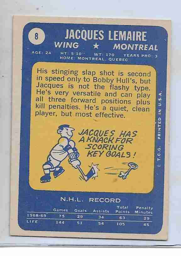 1969-70 Topps #8 ~ Jacques Lemaire Montreal Canadiens