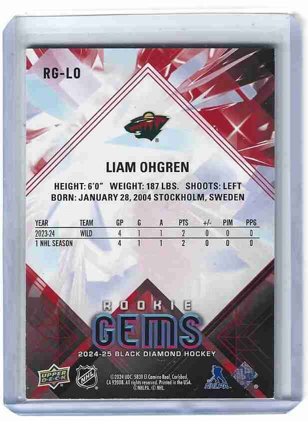 2024/25 BLACK DIAMOND LIAM OHGREN ROOKIE GEMS RUBY /100