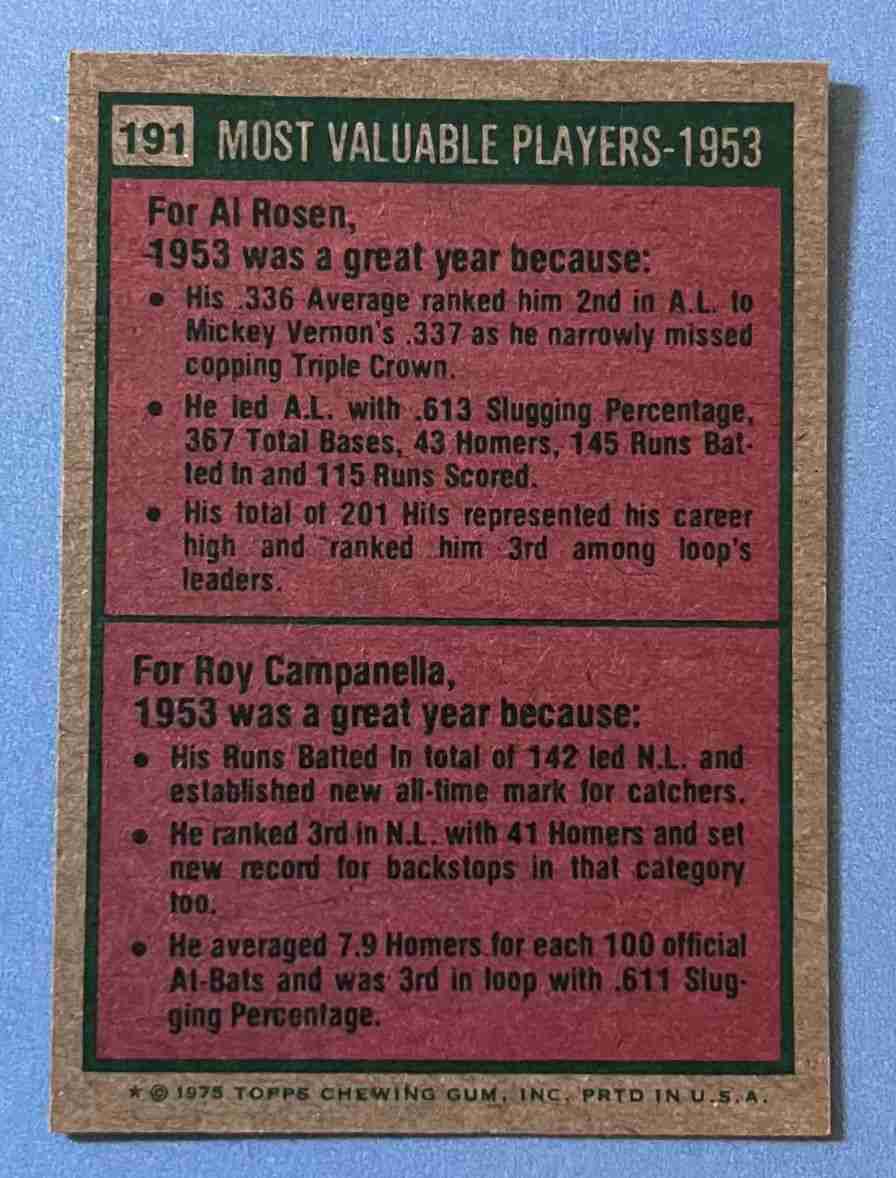 75 ToppsMini 1953 MVPS #191 HOFx1!