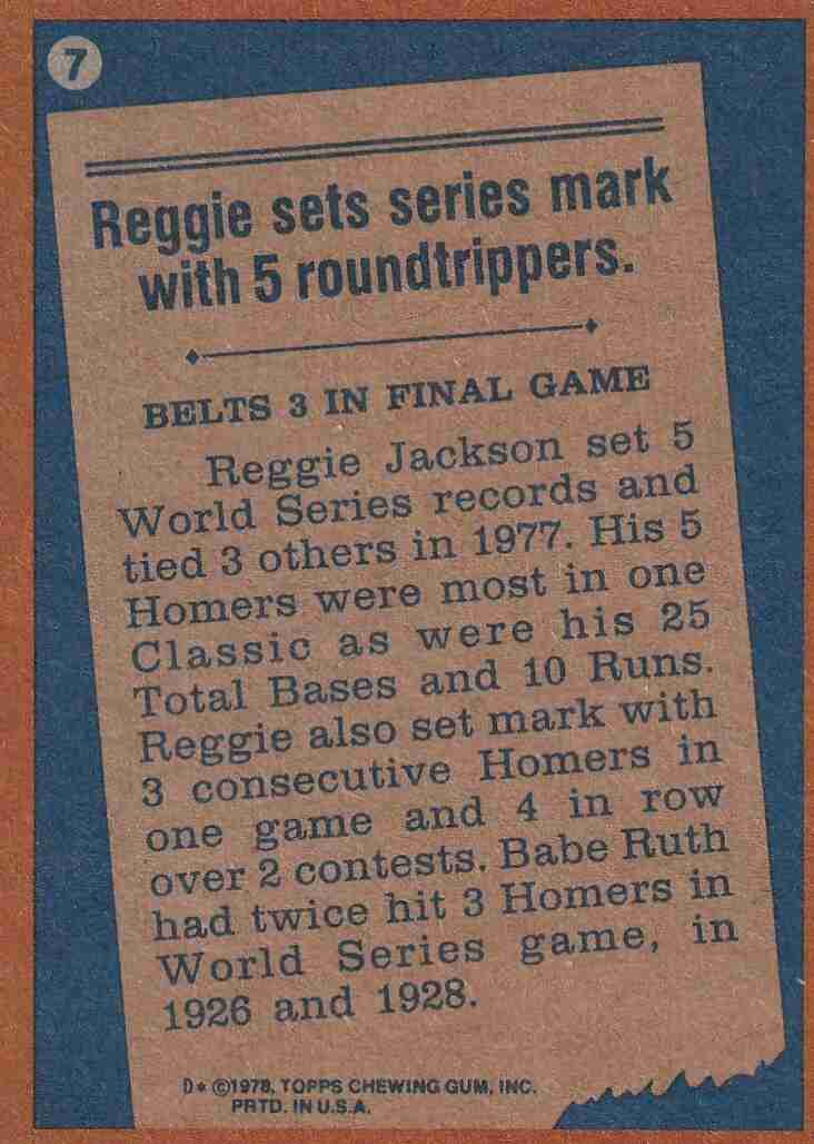 1978 Topps #7 Reggie Jackson '77 Record Breaker