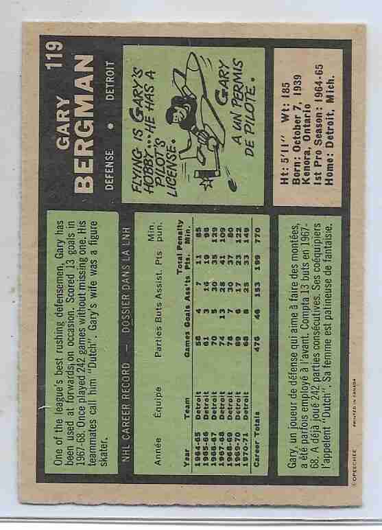 1971-72 Topps #119 ~Gary Bergman Detroit Red Wings