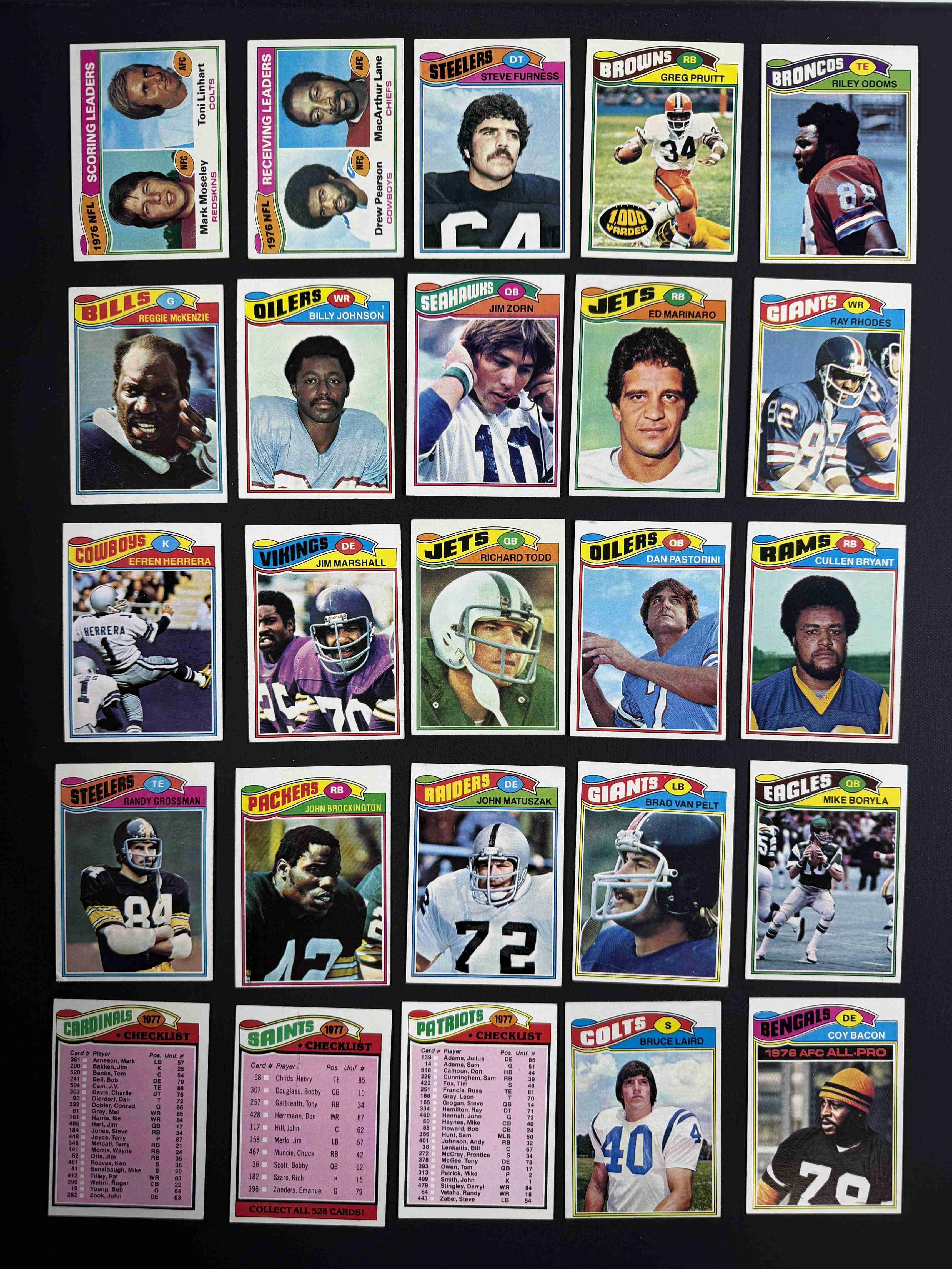 186 different 1977 Topps Football cards which includes several stars & HOFers. All HOFers are pictured. Condition ranges from VG-EX to EX. Lot A32