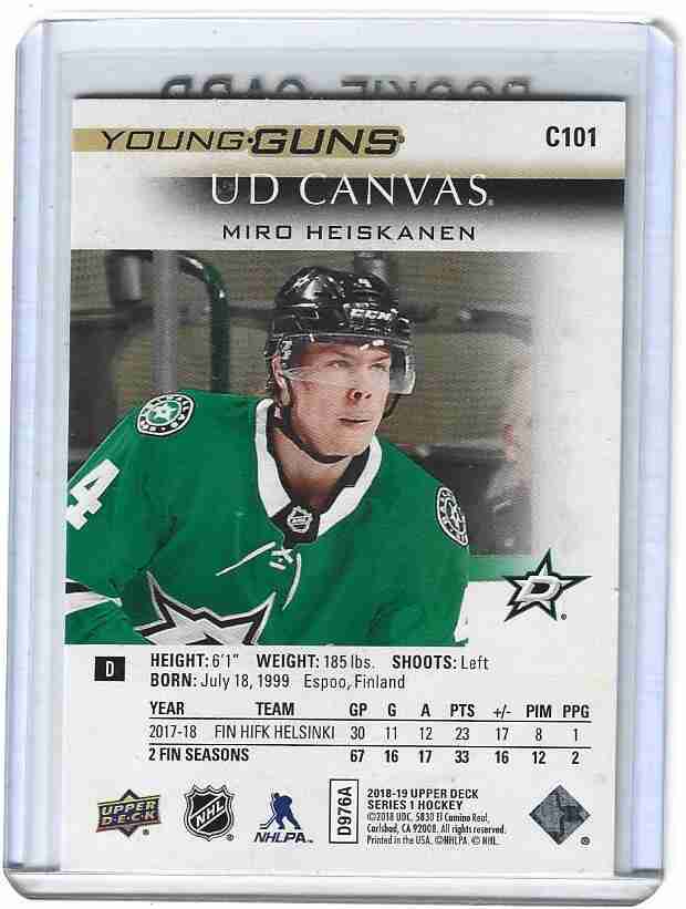 2018/19 UD 1 C101 MIRO HEISKANEN YOUNG GUNS CANVAS