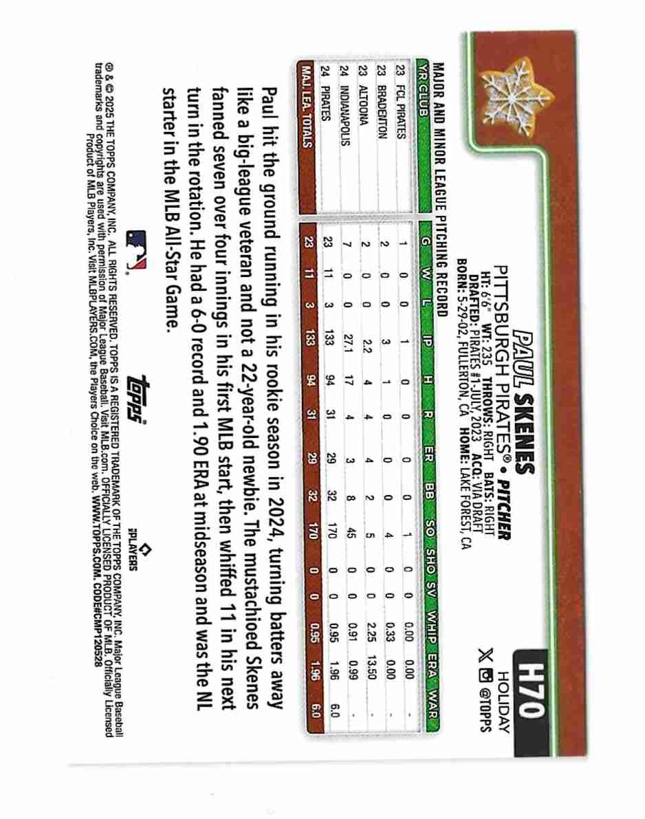 Paul Skenes 2025 Topps Holiday Cookie Back SP