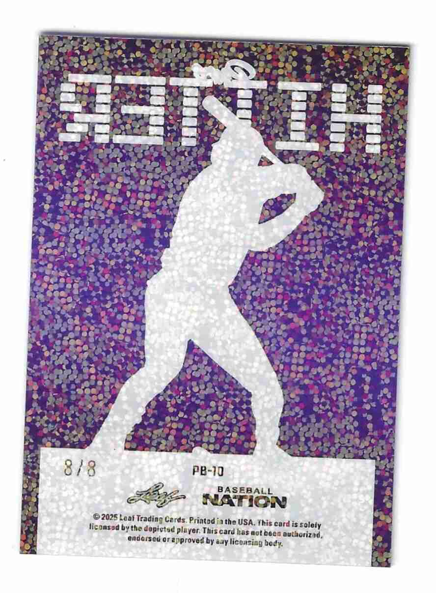 Sheffield 2025 Leaf Baseball Nation Purple. Serial numbered 8/8. Card is number PB-10 in the set. Mailed in standard envelope. Thanks for bidding!