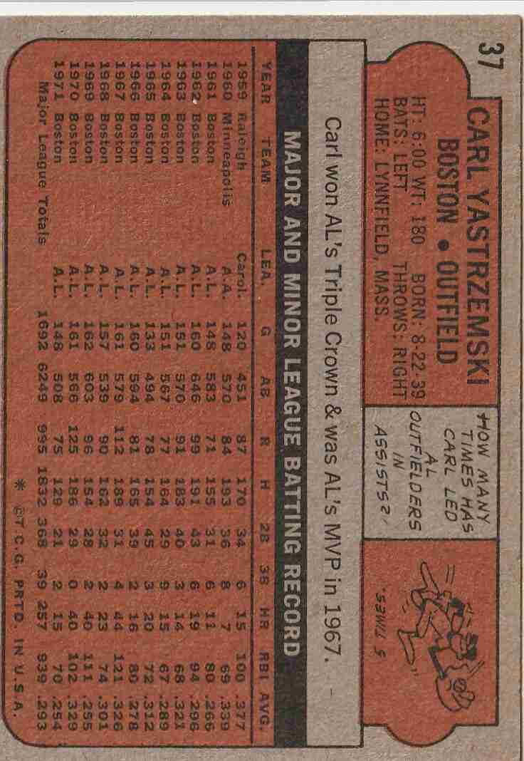 1972 Topps #37 Carl Yastrzemski Red Sox
