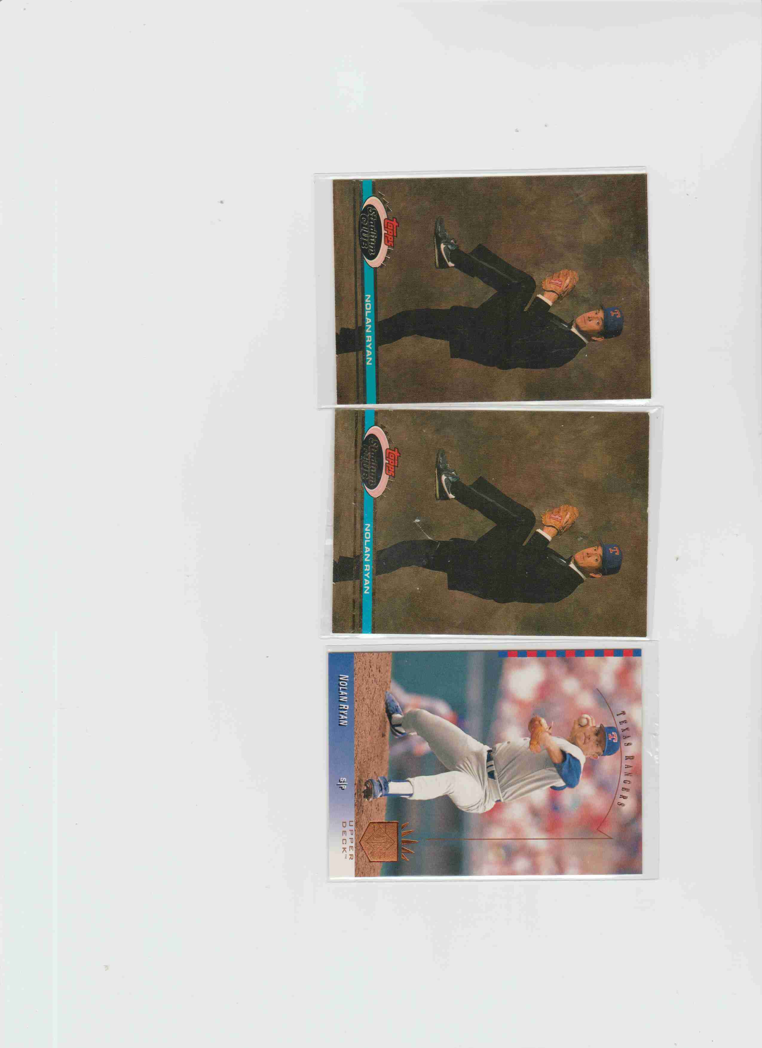 YOU ARE BIDDING ON 3 NOLAN RYAN CARDS CARD ARE ALL SLEEVE AND ENCASED HAPPY BIDDING AND HAVE A HAPPY NEW YEAR