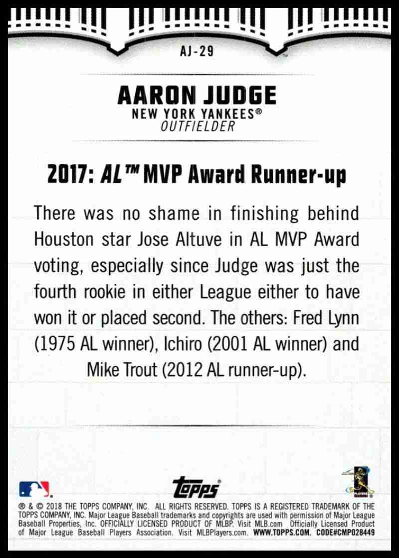 2018 Topps Aaron Judge Highlights #AJ-29 Aaron Judge New York Yankees MLB Baseball Card NM-MT