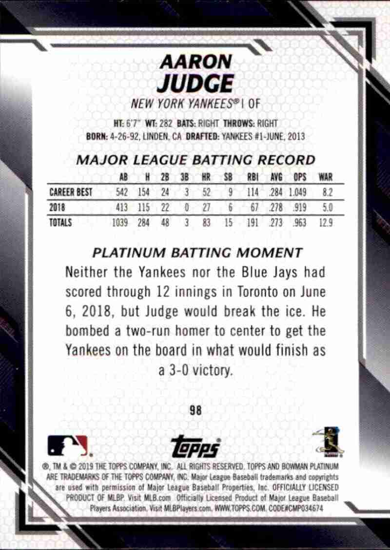 2019 Bowman Platinum #98 Aaron Judge New York Yankees Baseball
