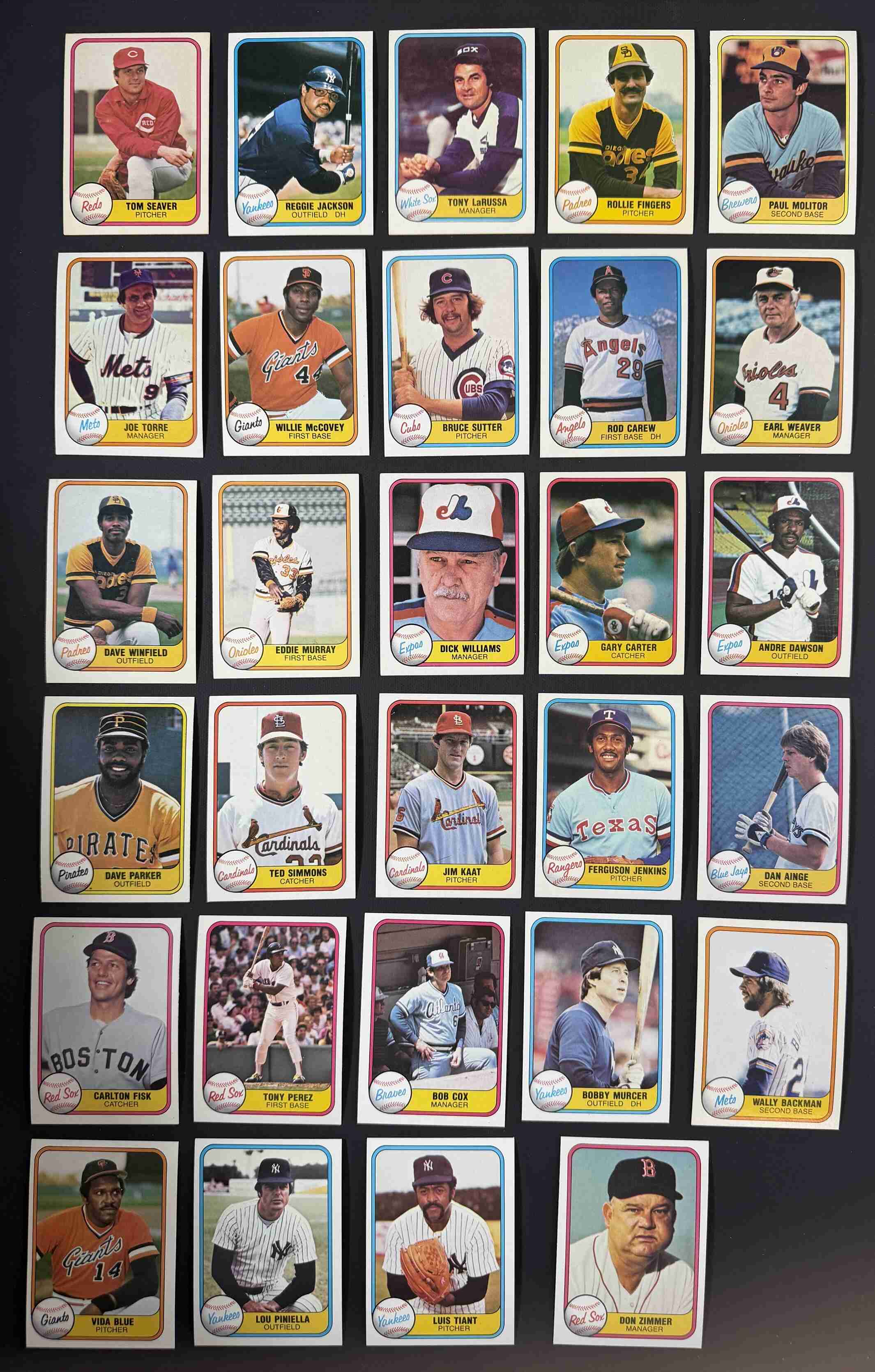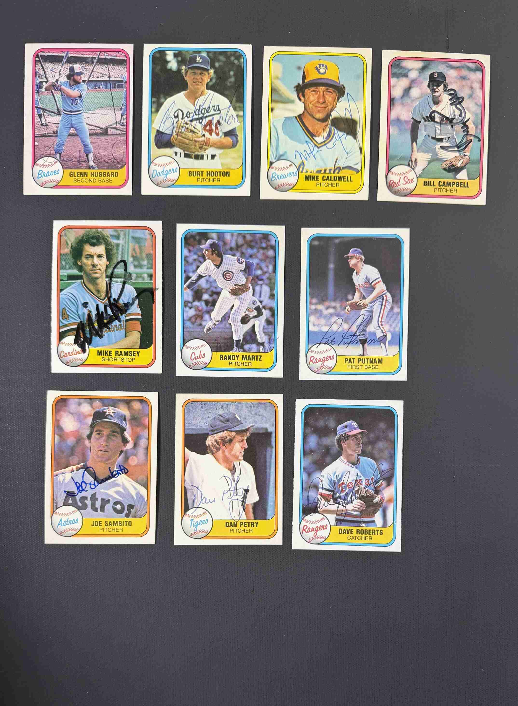 200 different unsigned 1981 Fleer baseball cards with 22 HOFers which are all pictured in the 3rd picture. Also includes 10 authentic autographed 1981 Fleer cards which are pictured in the 1st picture and the 2nd. Cards range from EX-MT to NM-MT. Most are at least NM and there may be a small handful that are EX.