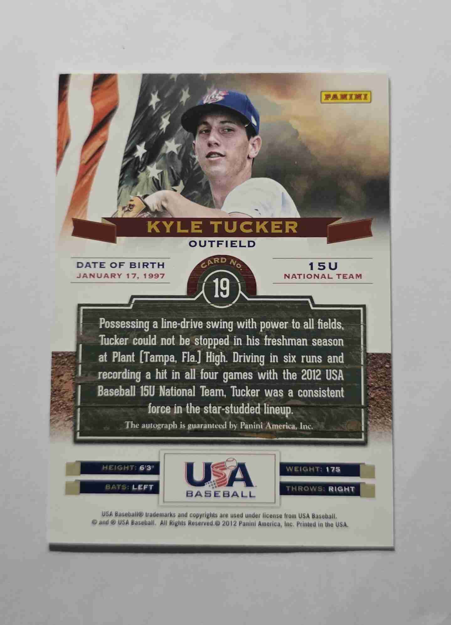 Kyle Tucker 2012 Panini USA Baseball 15u National Team Auto