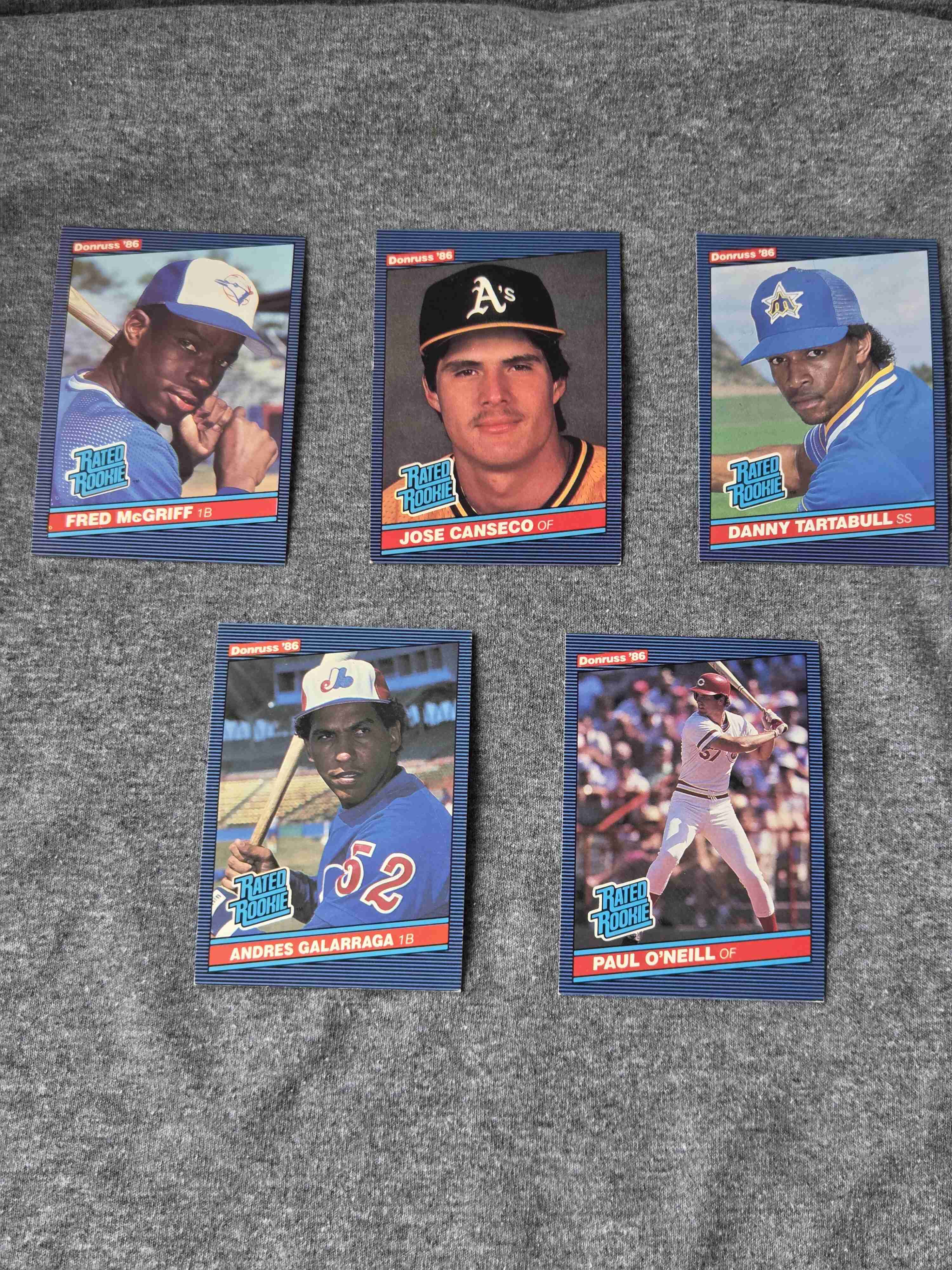 Time to thin out some sets from my collection! Keep watching Sportlots auctions as I’ll be putting sets up for bid each week – different sports, different years, different price points – in other words, something for everyone. ... Let's welcome in 2026 by playing up the anniversary angle and offer up a 1986 Donruss baseball set (complete at 660 cards). ... Canseco, McGriff and O'Neill highlight the "Rated Rookie" subset, while the Diamond Kings are also enduringly popular. Plenty of young stars, too, including Puckett, Clemens, Gooden, Mattingly and Sandberg. ...... Quick and secure shipping (from USA) from a veteran Sportlots seller with 100% positive feedback. Good luck bidding!