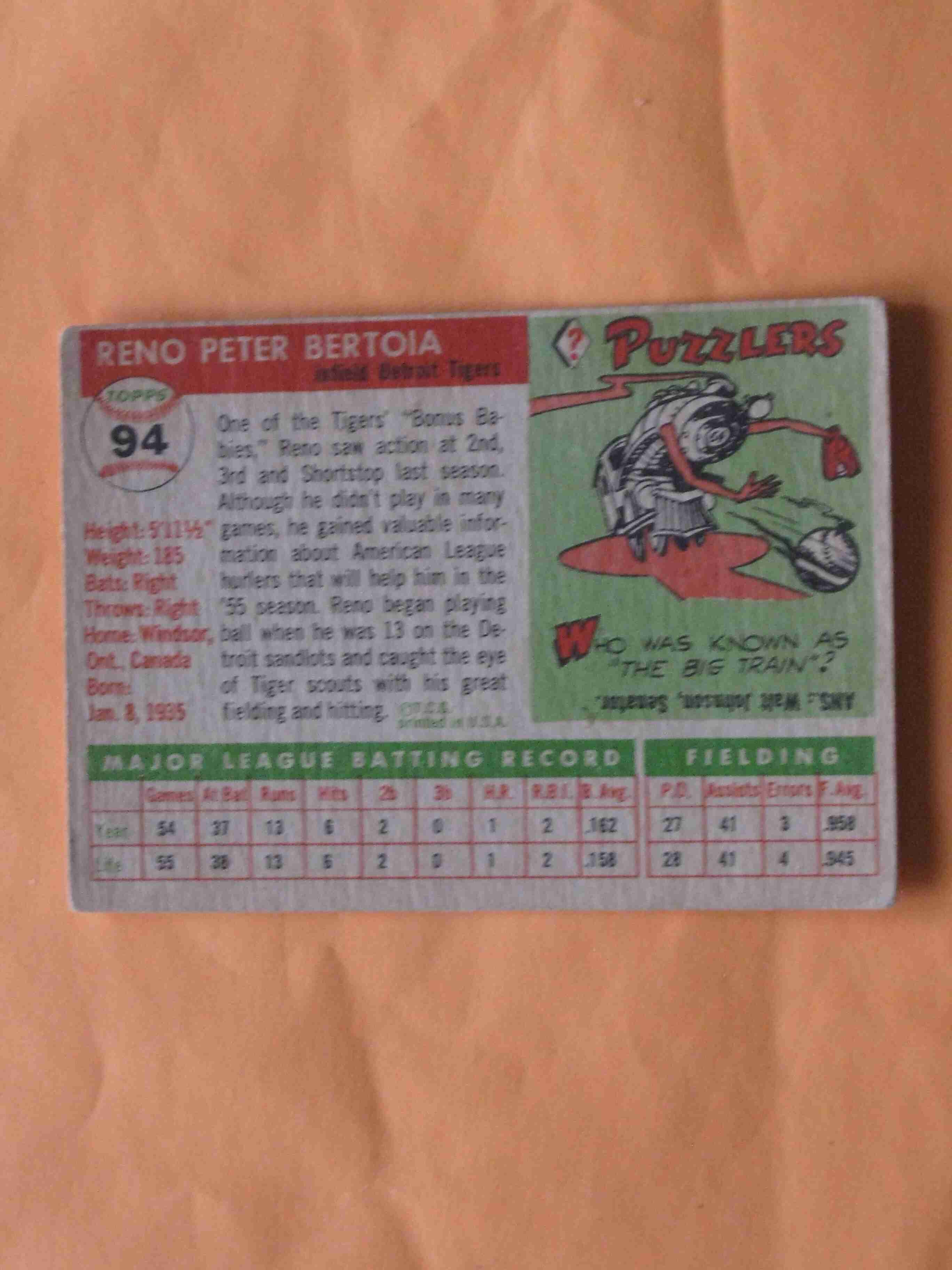 1955 Topps Reno Bertoia #94 Detroit Tigers