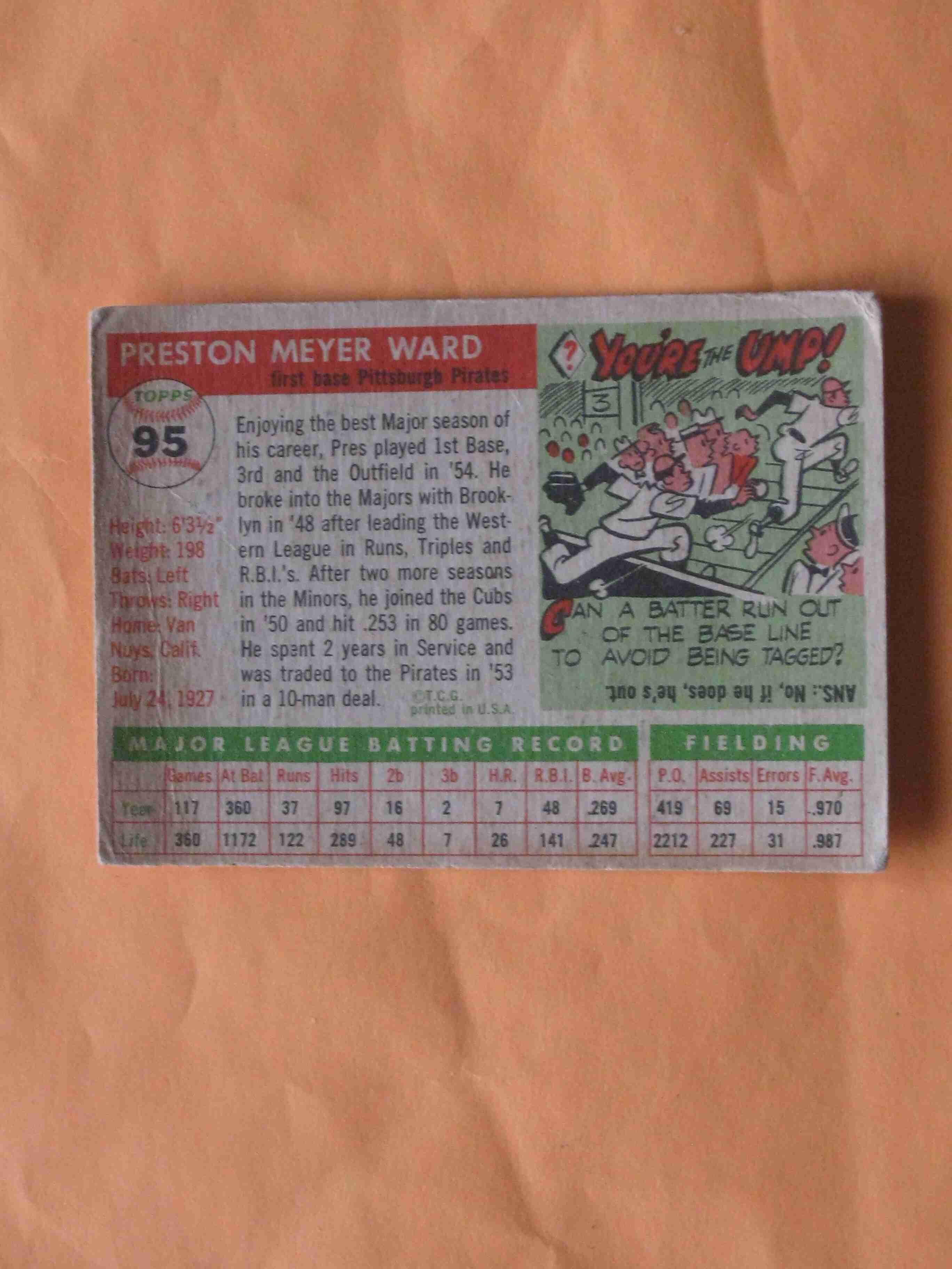 1955 Topps Preston Ward #95 Pittsburgh Pirates