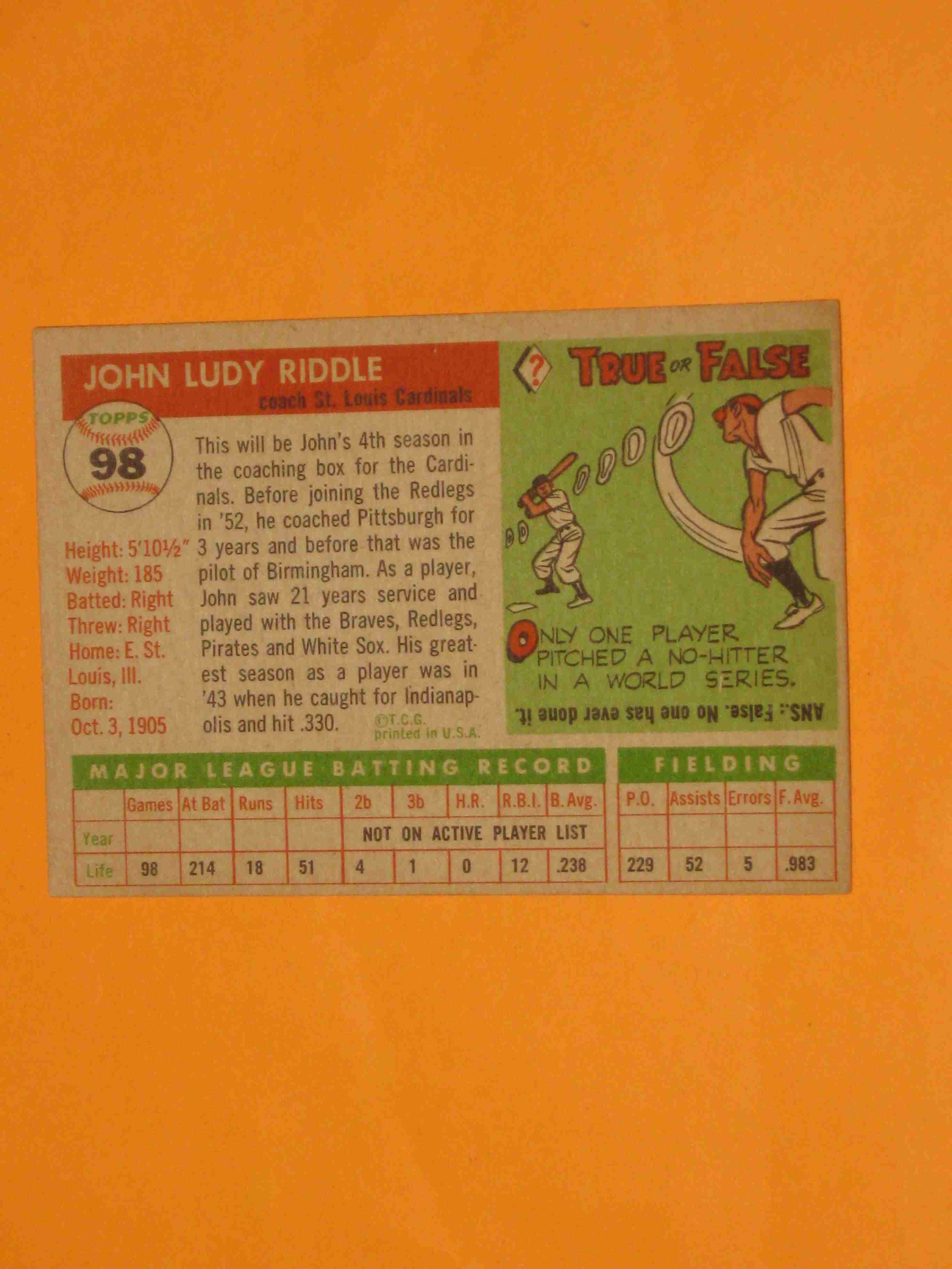 1955 Topps Johnny Riddle #98 St Louis Cardinals