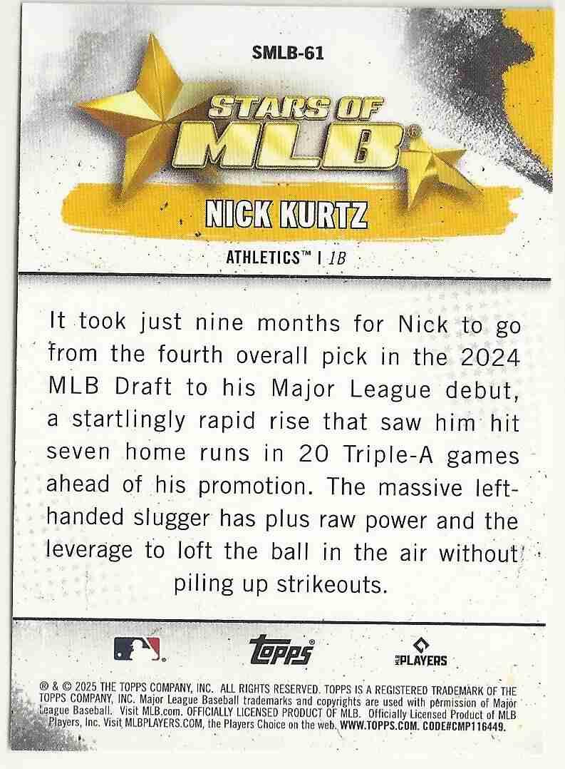 2025 Topps Update NICK KURTZ Starts of the MLB RC