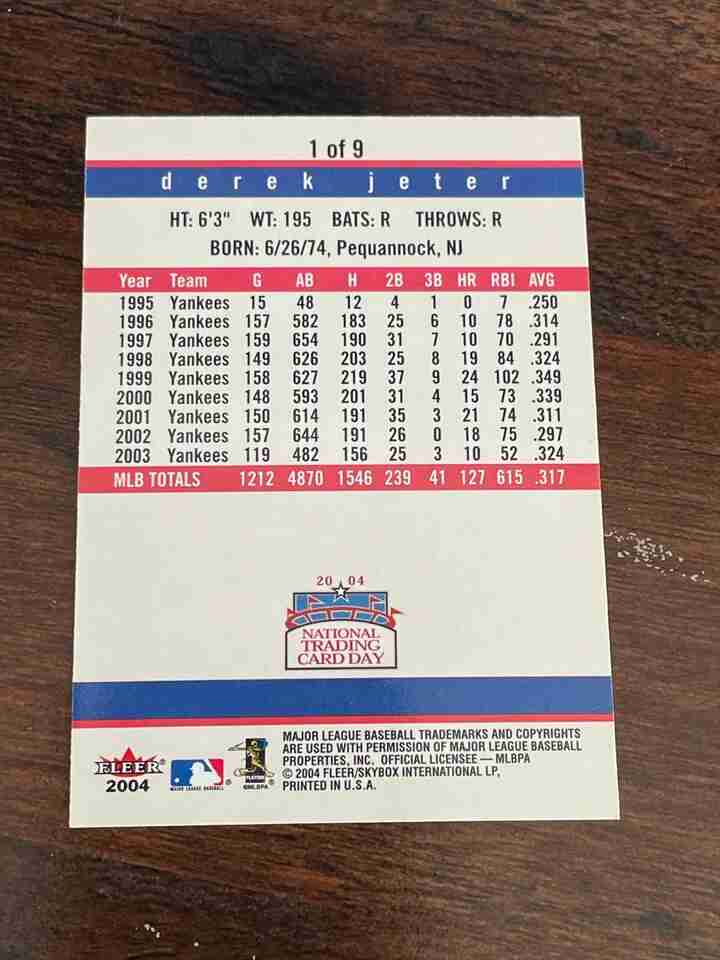 2004 Fleer Derek Jeter NATIONAL TRADING CARD DAY card# 1 of 9 Yankees