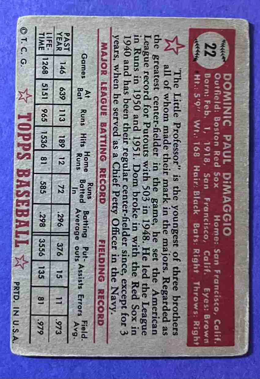 52 Topps DOM DIMAGGIO Lo #22 +++