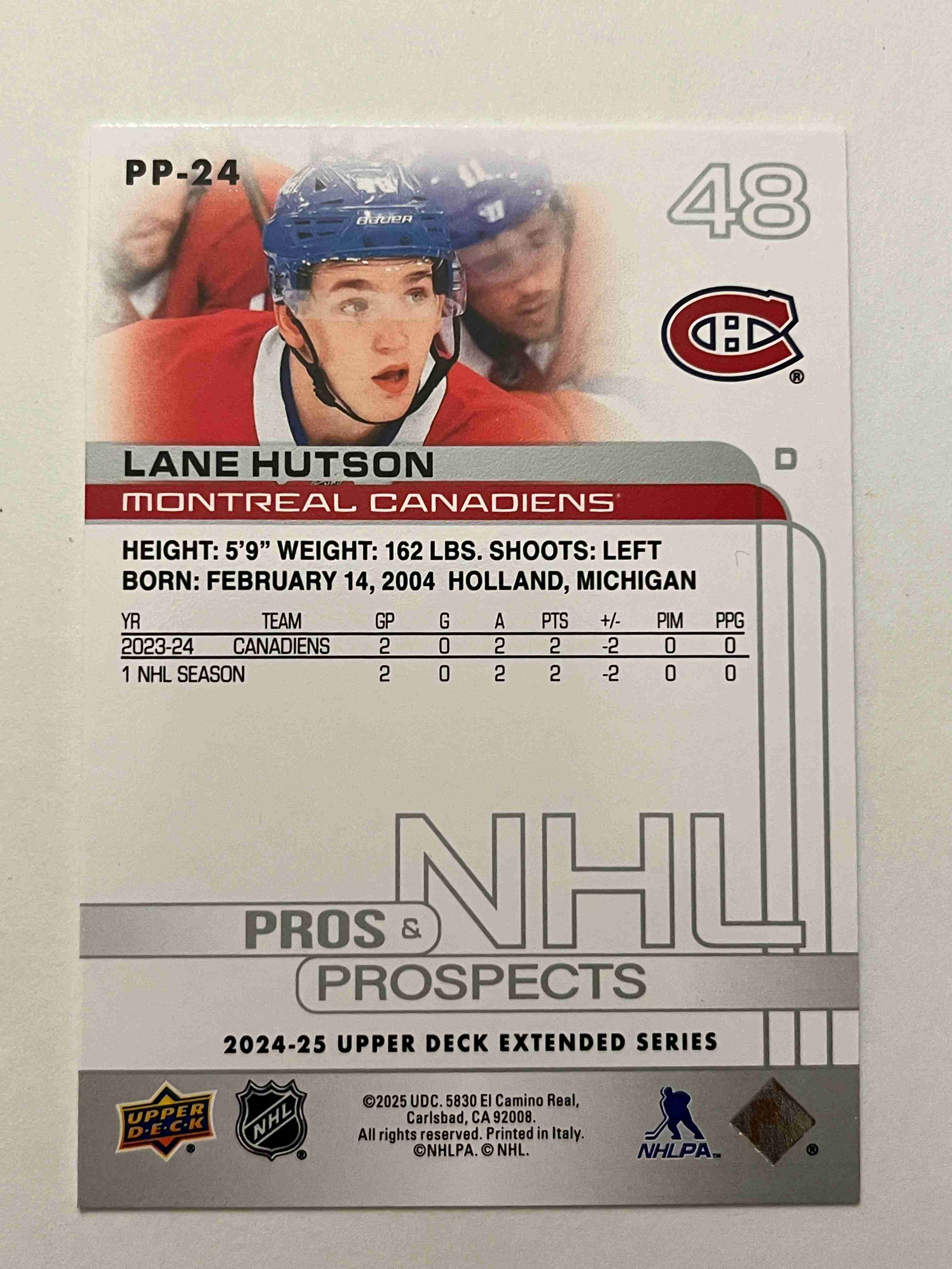 Lane Hutson 2024-25 UD Extended RC NHL Pros & Prospects