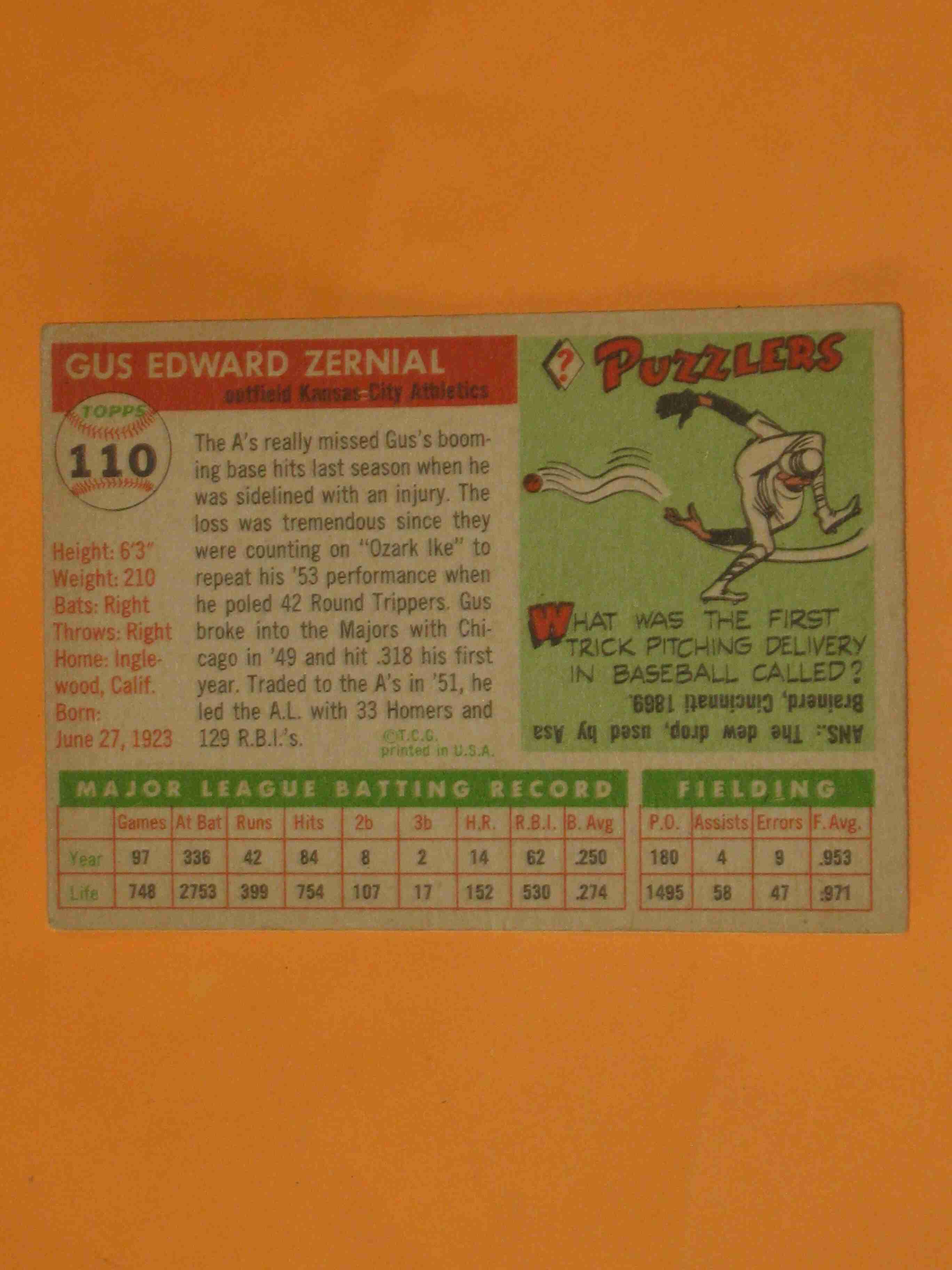 1955 Topps Gus Zernial #110 Kansas City Athletics