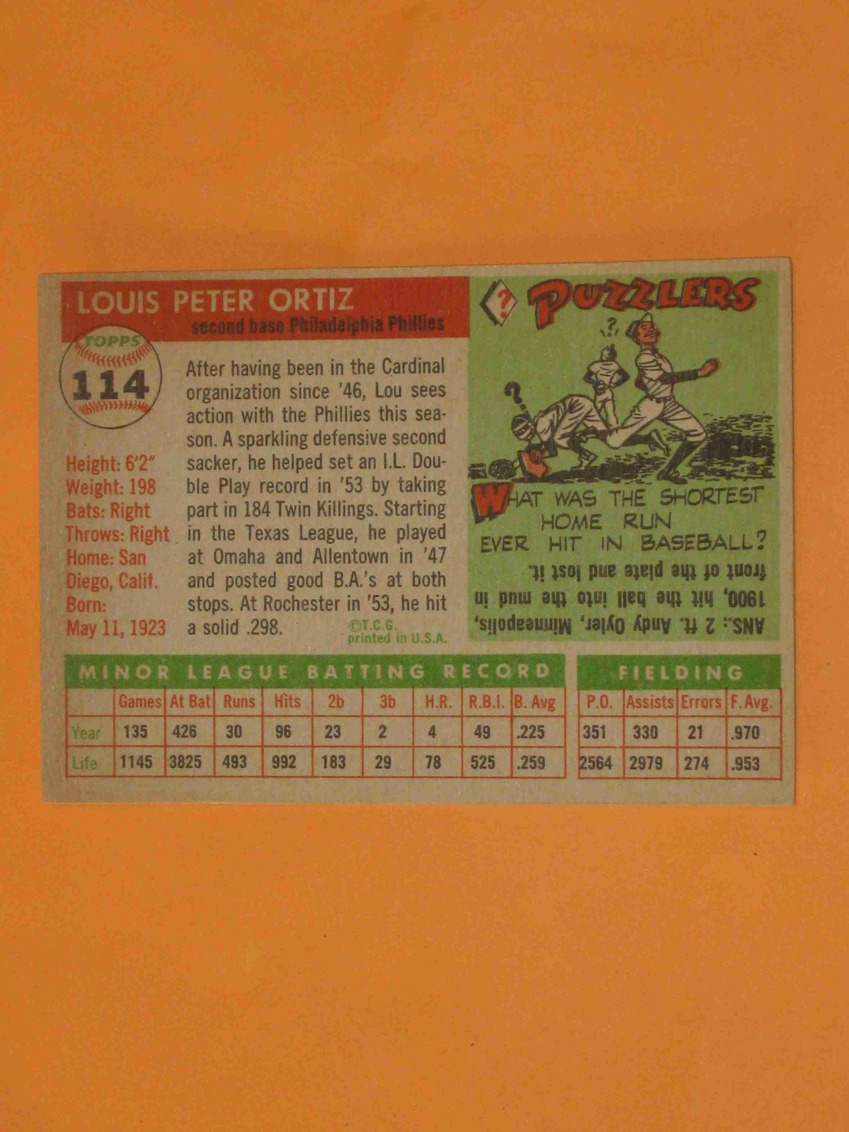 1955 Topps Lou Ortiz #114 Philadelphia Phillies