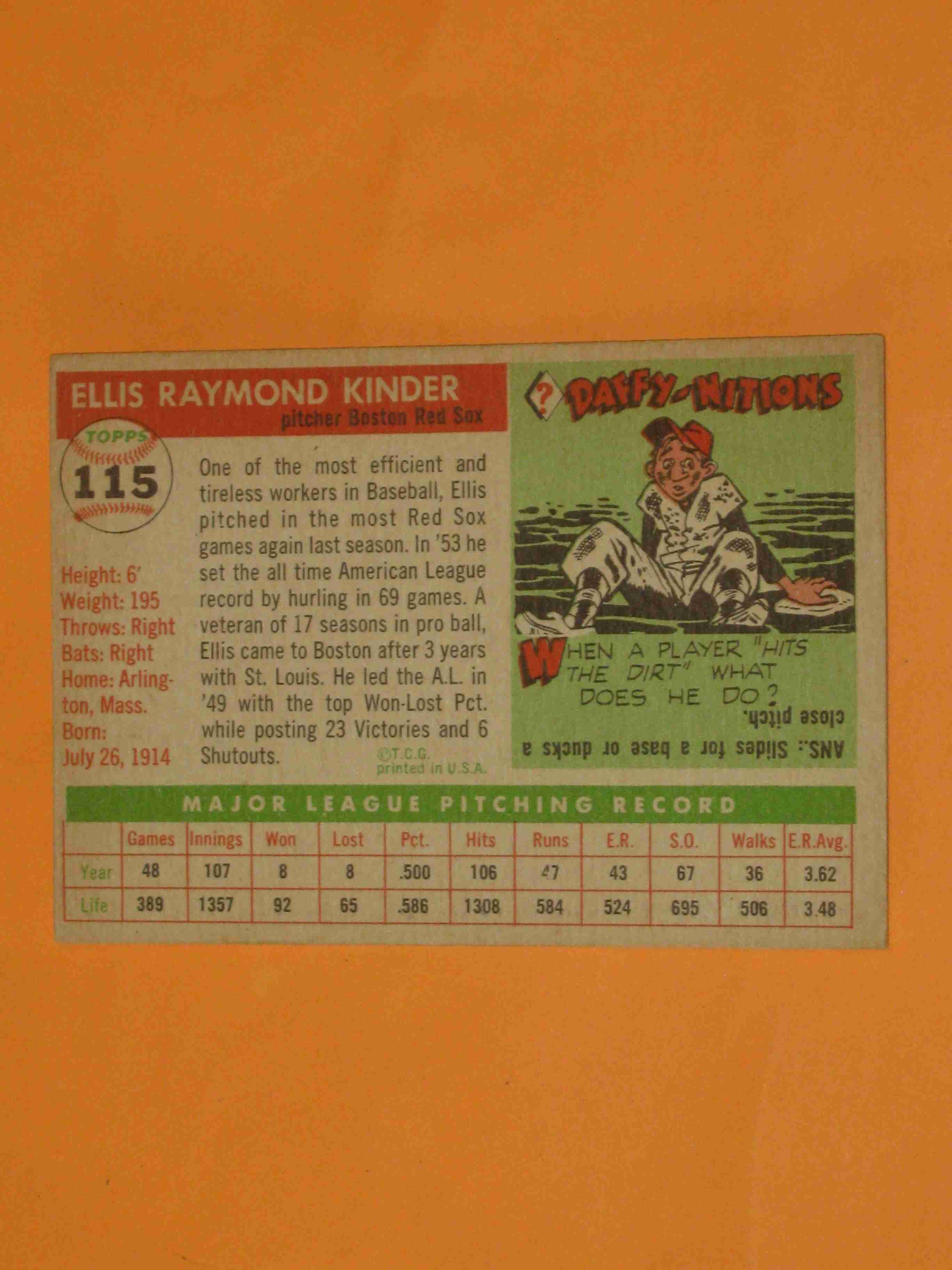 1955 Topps Ellis Kinder #115 Boston Red Sox