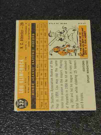 1960 Topps #137 Lou Klimchock RS - VG+/EX - BV $4